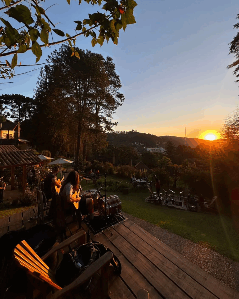 A pousada também conta com espaços de convivência, jardins e ambientes com vista para as montanhas — ideais para relaxar com os amigos após o evento ou curtir um final de semana romântico.